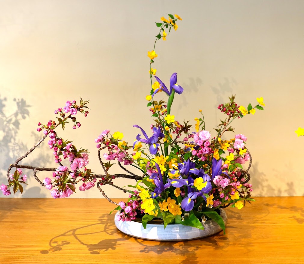 Supriya Dutt: Ohara landscape near view.Materials used: kwanzan cherry, iris, chamomile,Kerria japonica ‘Golden Guinea’, Baker’s fern.