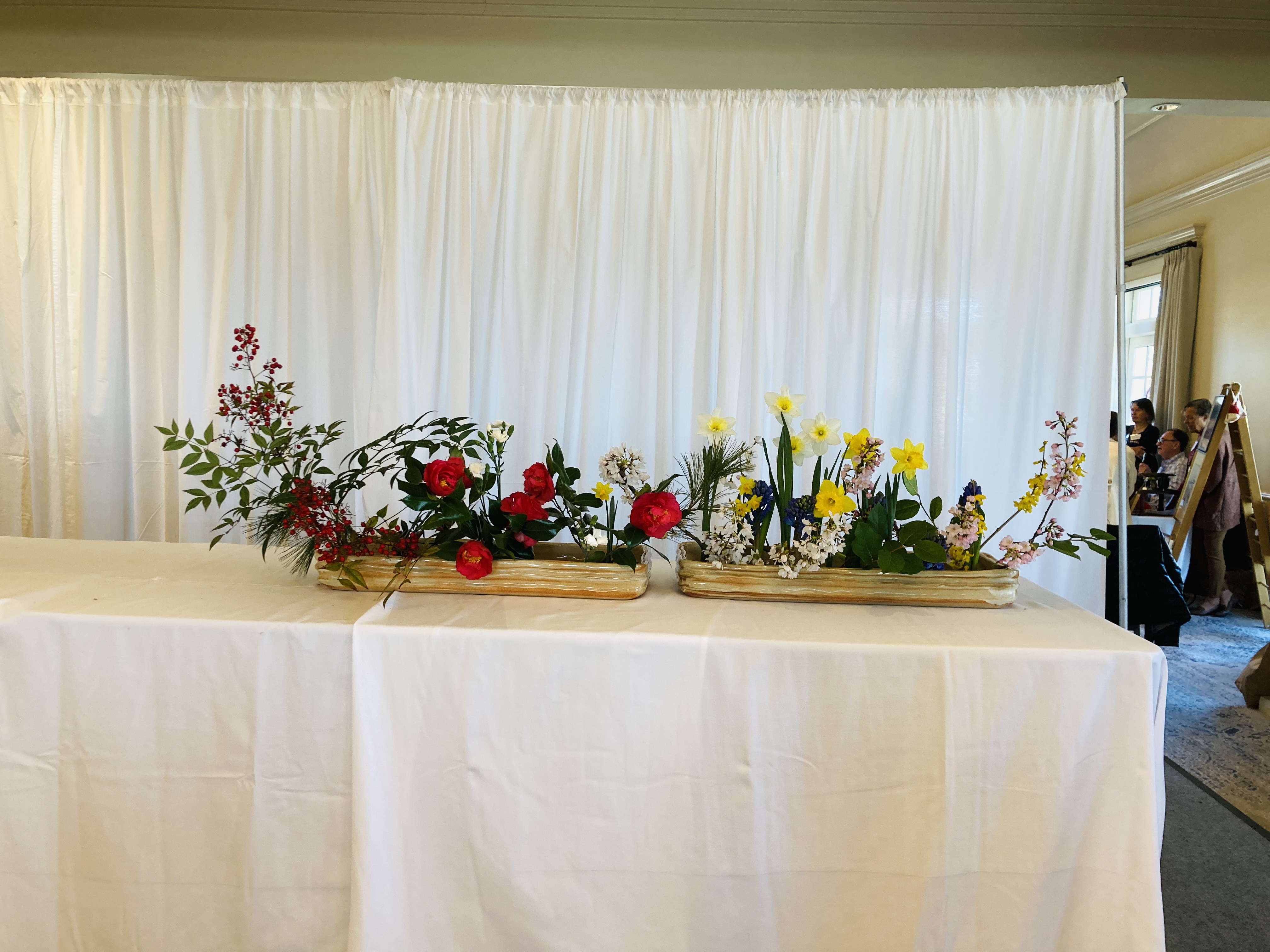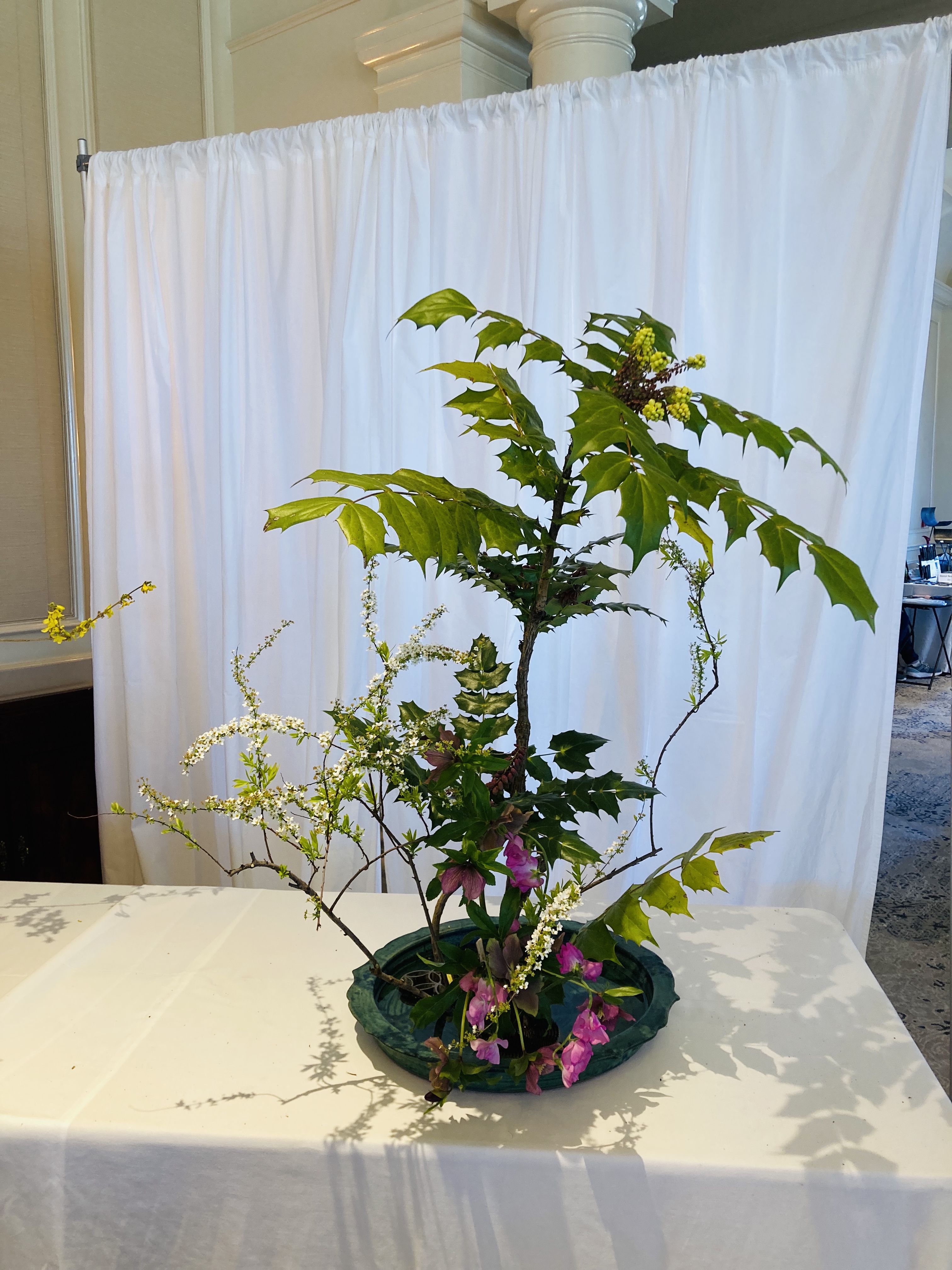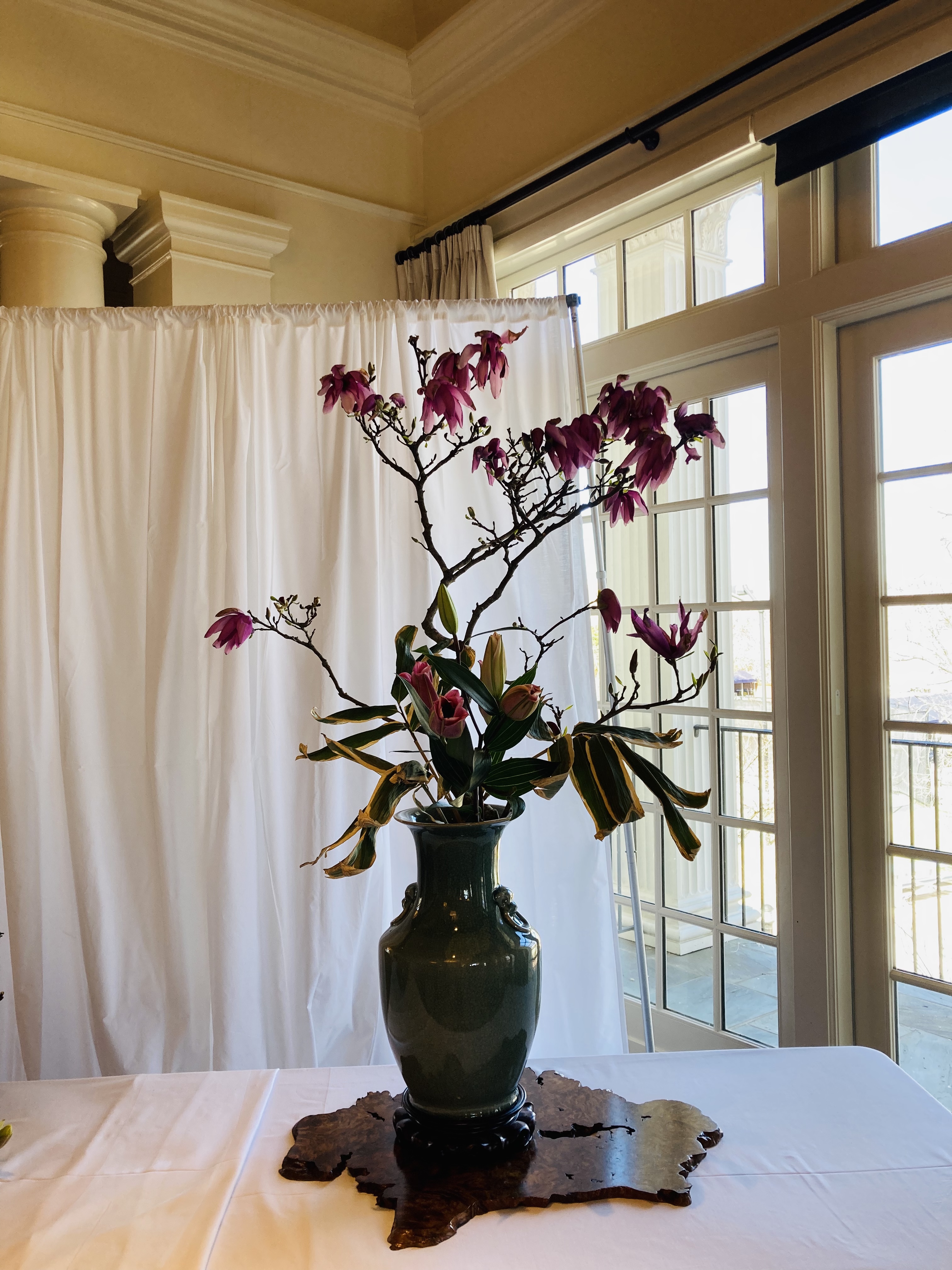 We welcomed Sensei Jose Salcedo, 1st Term Master of Ohara School of Ikebana, for a demonstration and workshops. For the demonstration hosted by the Ikebana International Washington, DC Chapter, he created seven large arrangements to showcase the natural beauty of the Ohara School. In the workshops, we had classes including Hana-Isho Rising, Moribana Upright, Moribana Water-Reflecting, One Row, Realistic Landscape, and Rimpa-cho ikebana. We had wonderful three days!